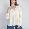 Su diseño presenta un delicado bordado floral en el pecho, detalles de broderi calado y botones forrados que aportan un toque artesanal. El corte suelto y la caída suave brindan comodidad y estilo para cualquier ocasión, desde un día casual hasta una salida especial. Ideal para combinar con jeans o faldas largas.