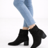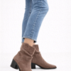 Bota caña media de diseño elegante y femenino, confeccionada en material tipo gamuza con delicado efecto fruncido que estiliza la pierna y aporta un toque sofisticado.