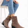 Bota caña media de diseño elegante y femenino, confeccionada en material tipo gamuza con delicado efecto fruncido que estiliza la pierna y aporta un toque sofisticado.